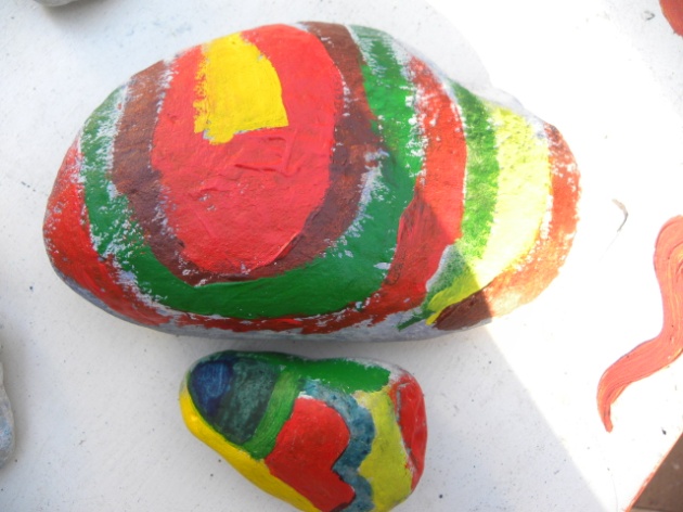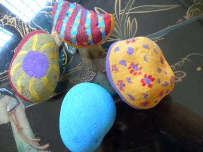 אפשר לקשט עם זה את שולחן החג, מתאים גם כמתנה כמשקולת נייר (מתנה שהילדים עשו זה כיף גדול גם להם וגם לסבא ולסבתא שכבר אין להם איפה לתלות את הציורים). מאבנים גדולות יותר אפשר לעשות מעצור לדלת, אביזר קישוטי לגינה, לעציצים ובטח גם לכם יש כמה רעיונות טובים.