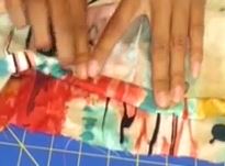 2. לוקחים בד שהוא באורך שלו האורך של החצאית שאת רוצה לתפור, והרוחב הוא הרוחב שהגיע מהחנות (בסרטון הבד נראה ברוחב של מטר ועשרה) הרוחב הוא בערך כפול מהרוחב הסופי של היקף המותן.