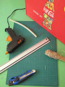 אקדח דבק חם או דבק פלסטי (נוח ומהיר יותר לעבוד עם דבק חם, אבל מי שחושש או שאין לו יכול להשתמש גם בבדבק פלסטי).