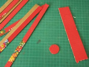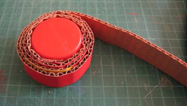 חותכים מהקרטון רצועות ארוכות ברוחב של כ-2 ס"מ (הרוחב לא ממש עקרוני, ואין בעיה אם רוחב הרצועות לא זהה), רצועה אחת קצרה ברוחב של כ-4 ס"מ, ועיגול קטן (בקוטר של כ-1.5-2 ס"מ).